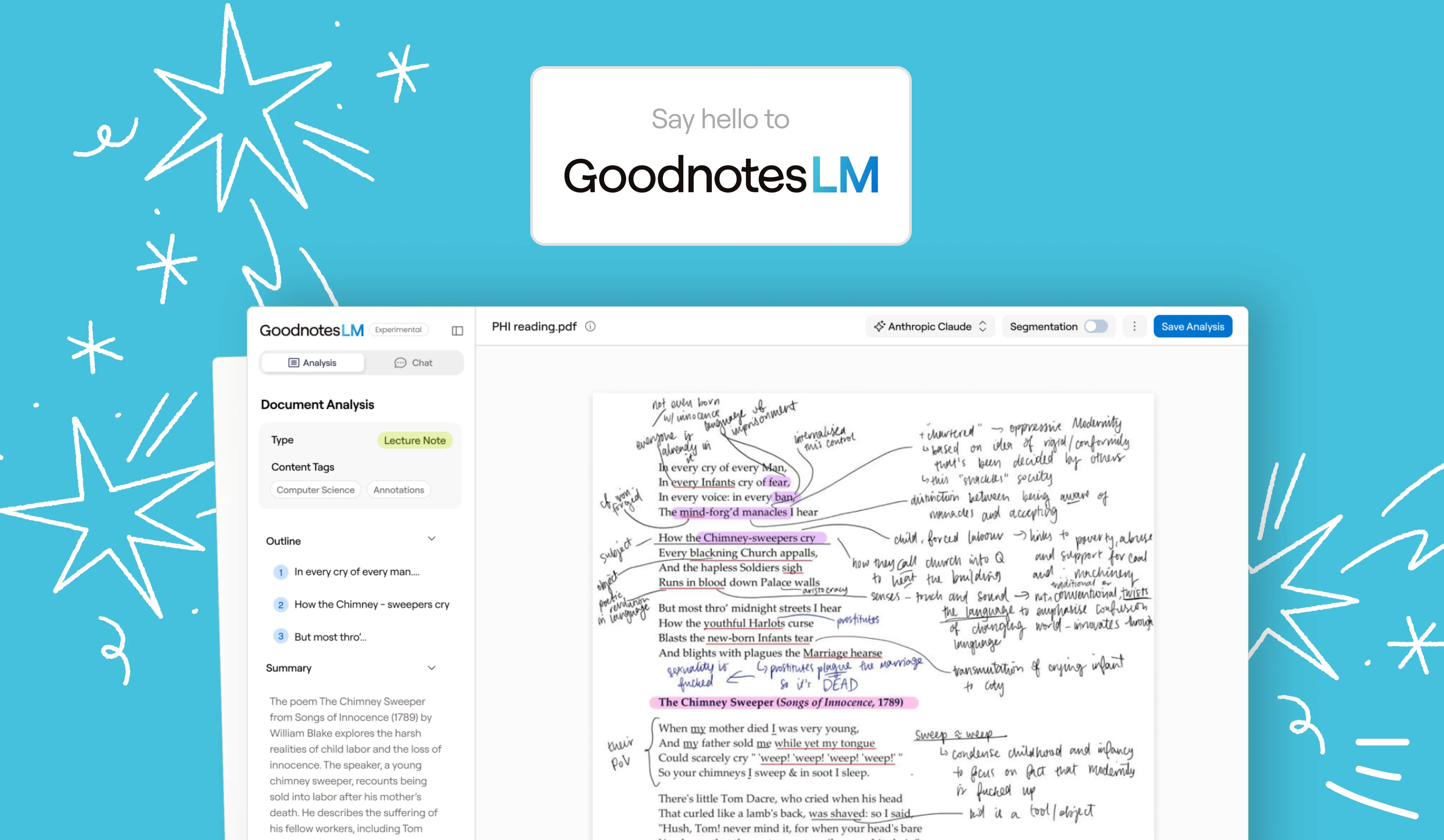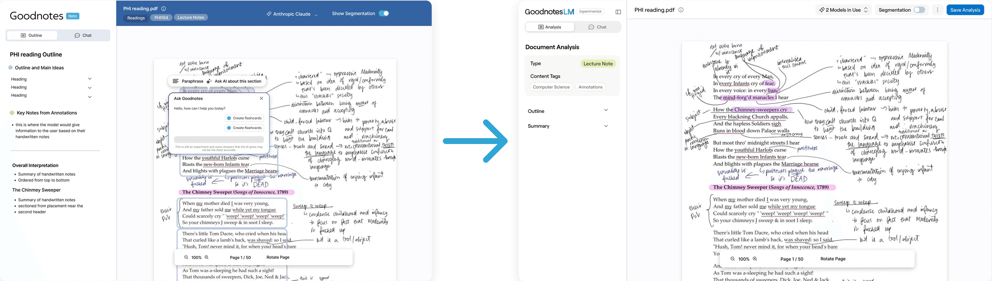Goodnotes is a leading digital note-taking app with millions of users. Our team's goal was to create a document analysis and outline generation testing platform. This platform would be used internally to test the feasibility of implementing new AI features.
