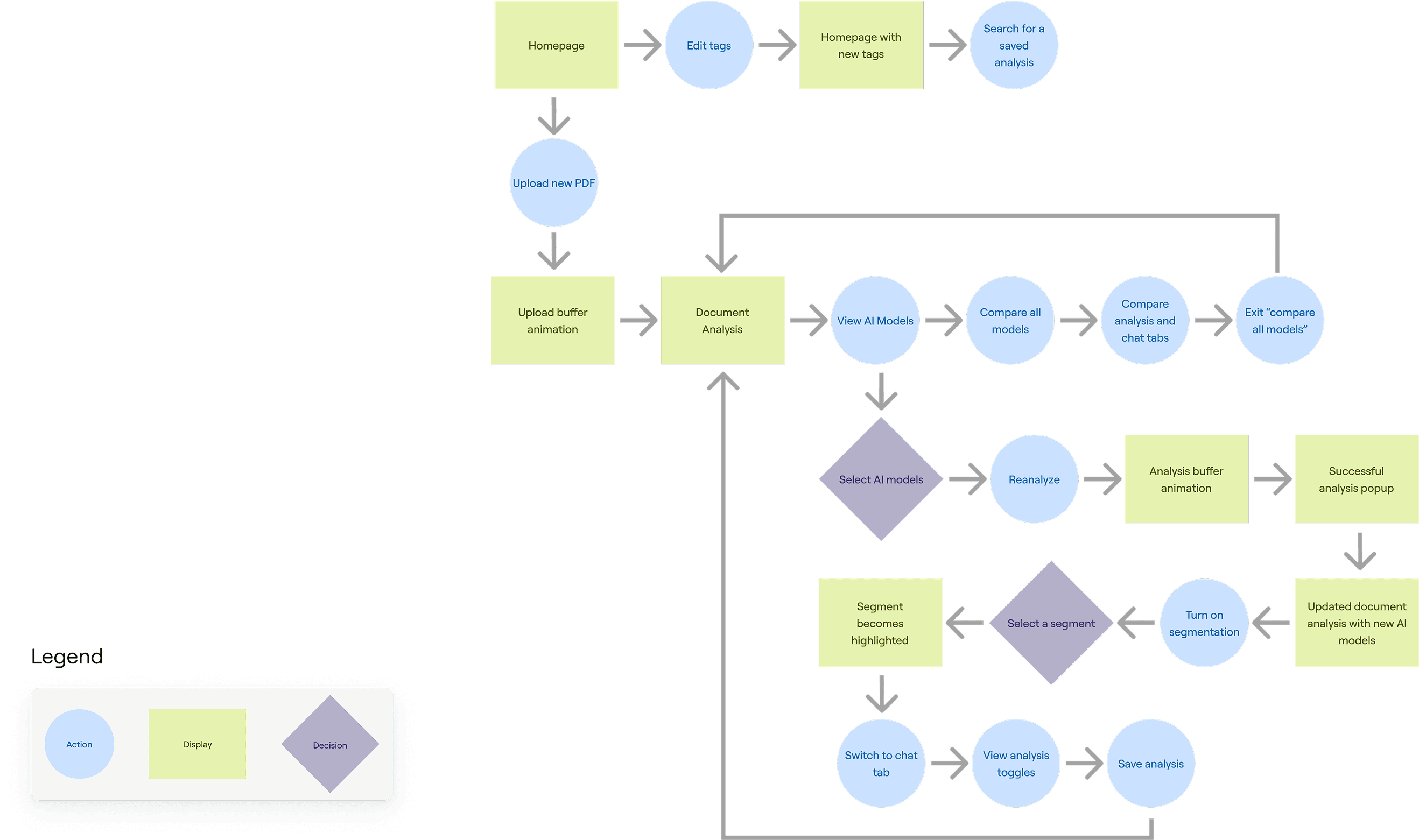 Through wireframing, we experimented with different ways of laying out the homepage and document analysis page.